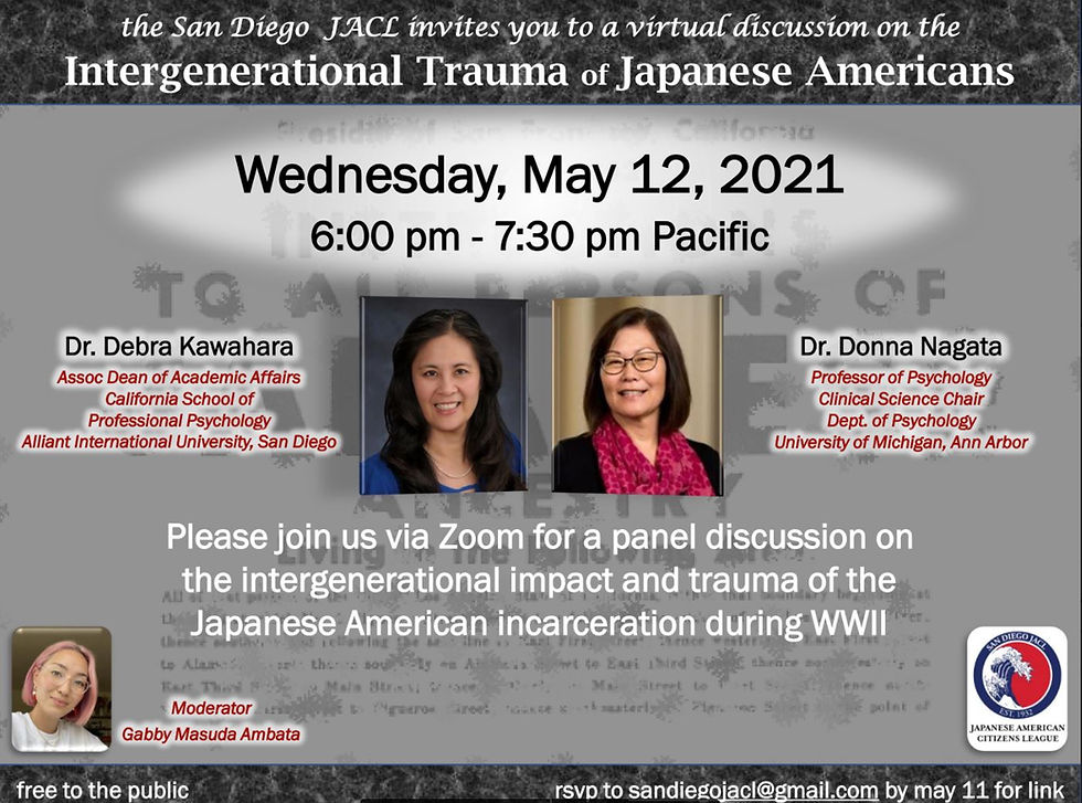 Join us for a discussion on the Intergenerational Trauma of Japanese Americans Wednesday May 12thsandiegojaclApr 2, 20210 min readUpdated: May 11, 2021